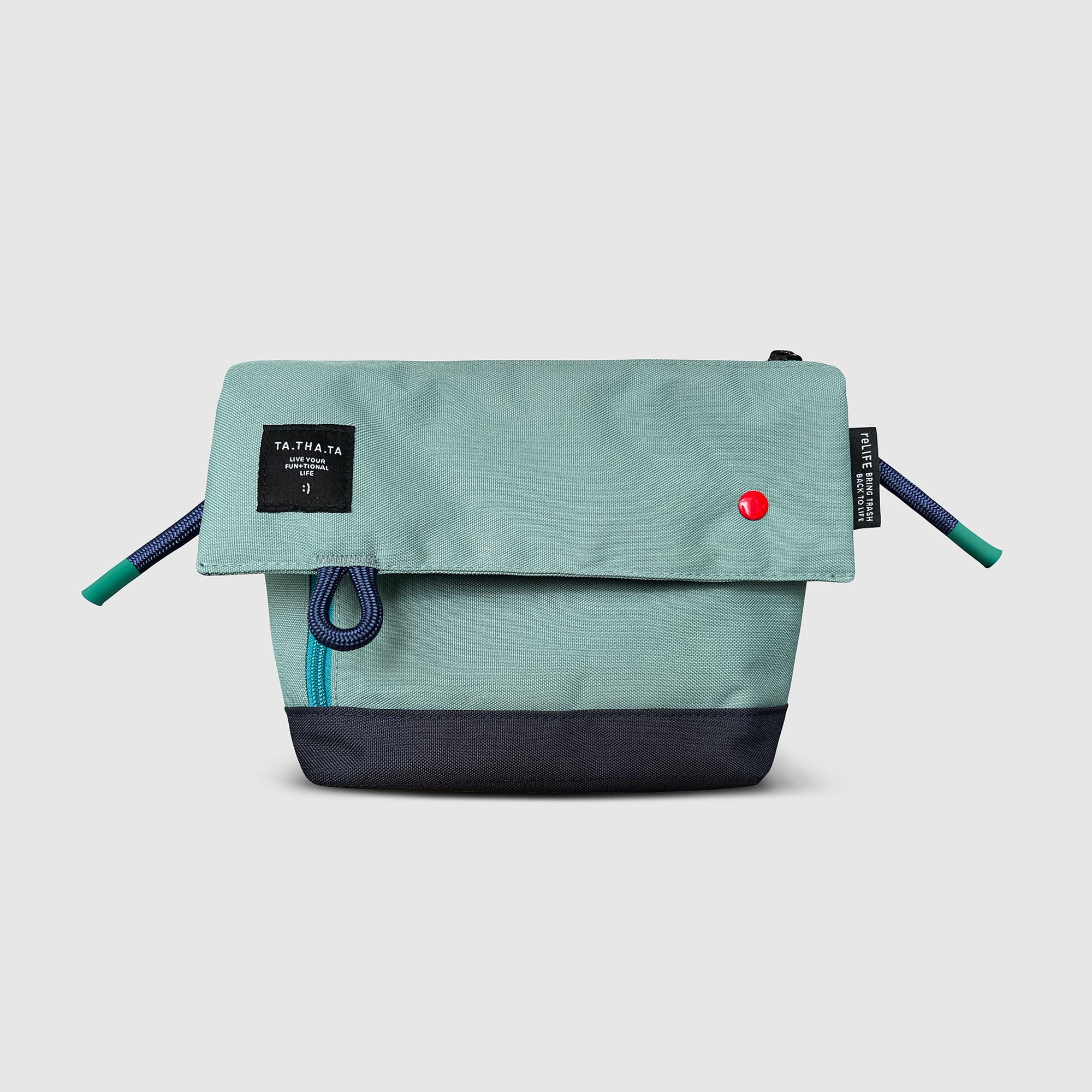 台形状で左右非対称のデザインが個性的なスリングバッグです。ポップカラー基調のボディにストラップのロープがアクセントとして小粋に映えます。前面のジッパーポケットに加え、背面にはスマホの収納を考慮したスリップポケットを配置。コンパクトなサイズ感を保ちながらも抜群の実用性を誇ります。